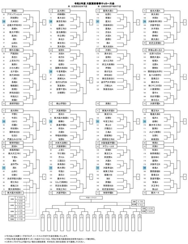 大阪高校春季サッカー大会 兼 全国高校総体予選 組合せ