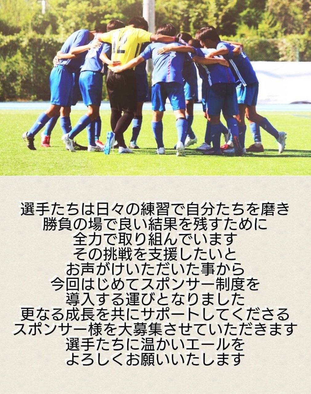 日々の活動をより充実させる為に選手たちの挑戦を応援してくださるスポンサー様を大募集しています。