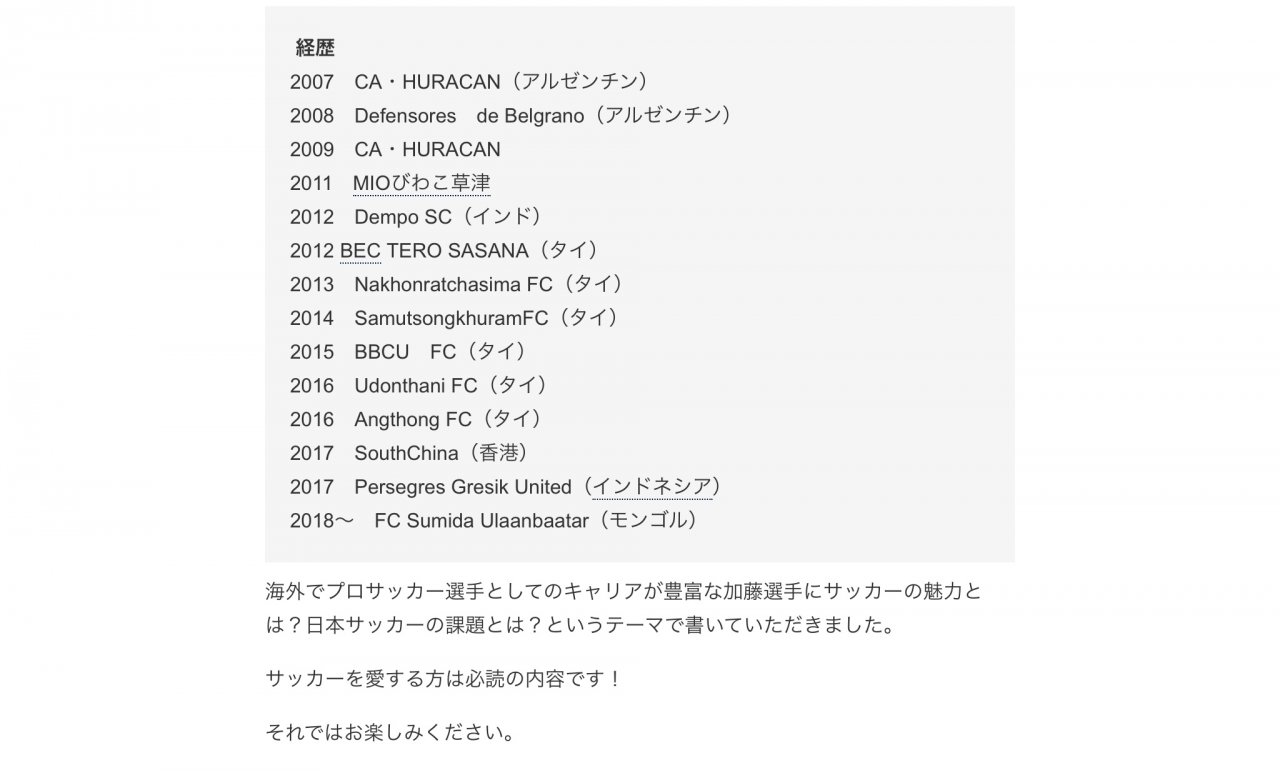 加藤友介選手 訪問 by 常翔学園高校サッカー部 スタッフ on 2018年7月30日 with コメントはまだありません 加藤友介選手は高校卒業後、単身アルゼンチンに渡り、元日本代表の高原直泰選手以来2人目のアルゼンチン1部リーグでプレーした日本人選手となる。その後、インド、タイ、香港、インドネシア、モンゴルでプレーし、現在もプロサッカー選手として挑戦し続けている。本校の練習に参加し、夢や目標設定の重要性、そこから逆算した日々の生活や取り組みなど、自身のキャリアと照らし合わせながら、部員に対して全力でぶつかってくれました!加藤選手、貴重なお時間をありがとうございました。 加藤選手のブログ 加藤友介 選手の挑戦 インドネシアリーグへの挑戦 加藤友介選手の経歴 共有:シェアTwitterFacebook 関連