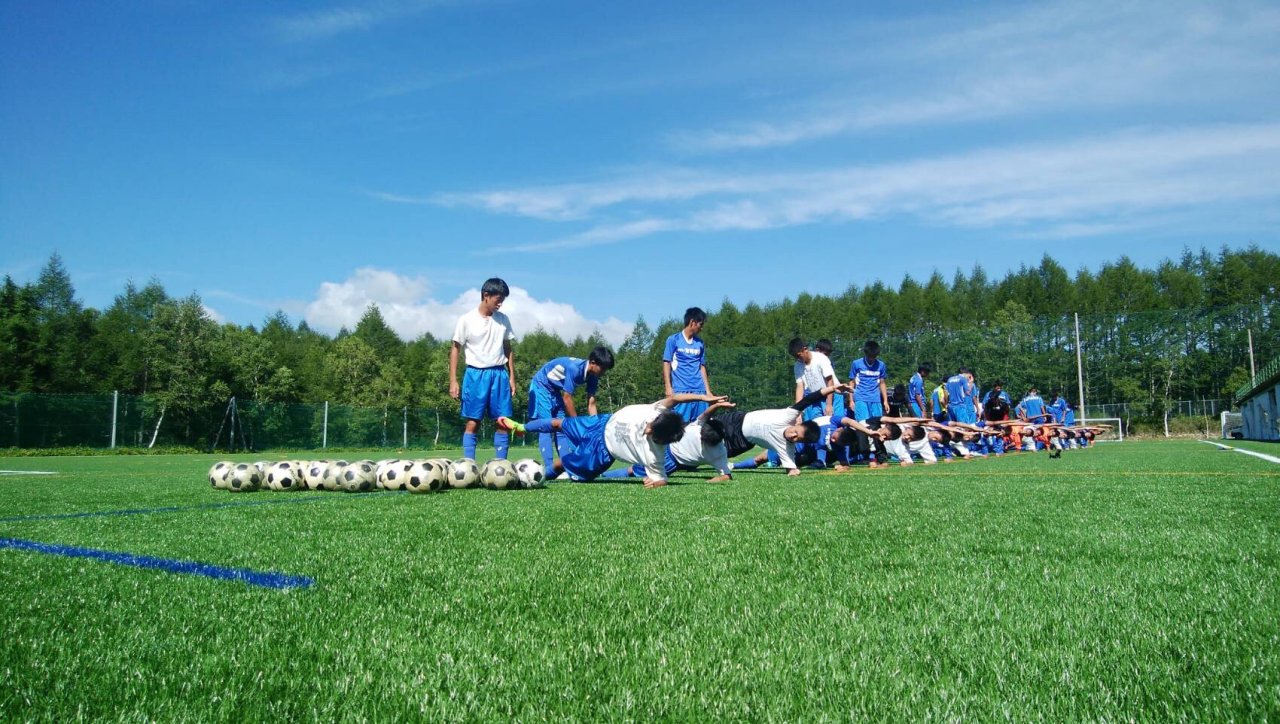 8月2日、午後からは昨年に引き続き、神奈川県の弥栄高校と練習試合を行いました!チームを2つに分け、それぞれ35分×4本の強化試合を行いました。疲労がある中、ボールに最後まで食らいつけるか、しんどい時にもうひと頑張りできるか。そういったことができる選手と、できない選手がはっきり出た試合でした。試合後には、紅白戦、ウエイトトレーニングを行い、さらに追い込みをかけました!